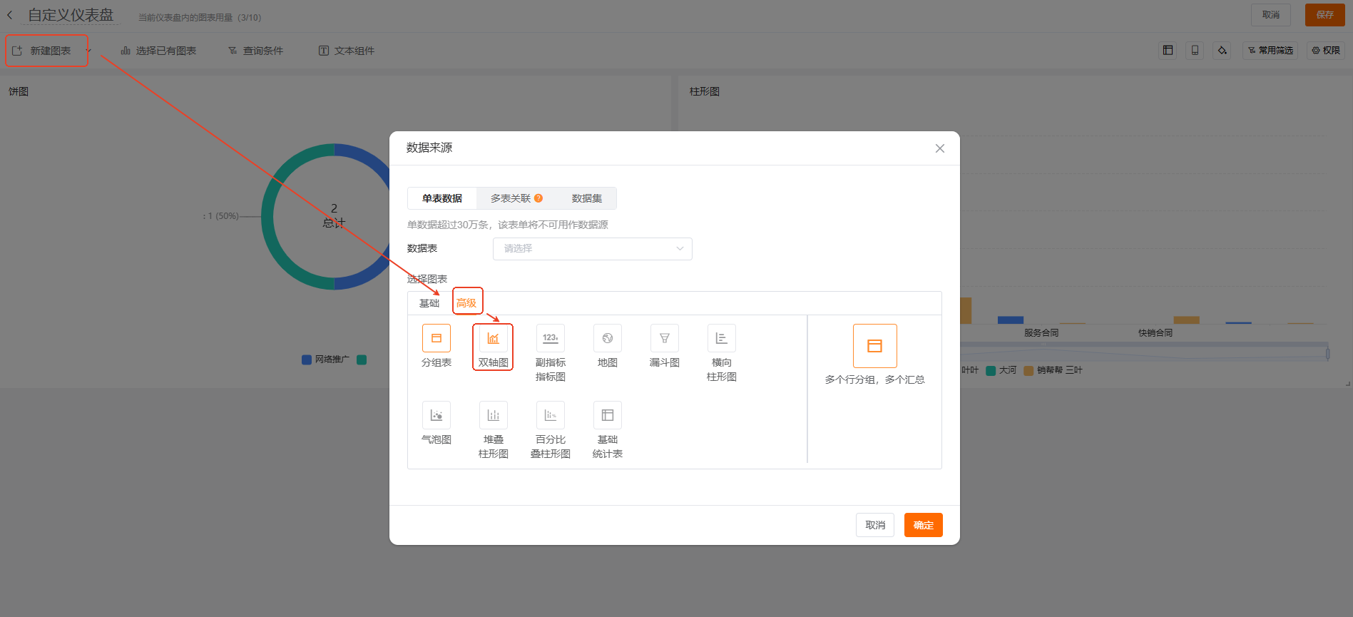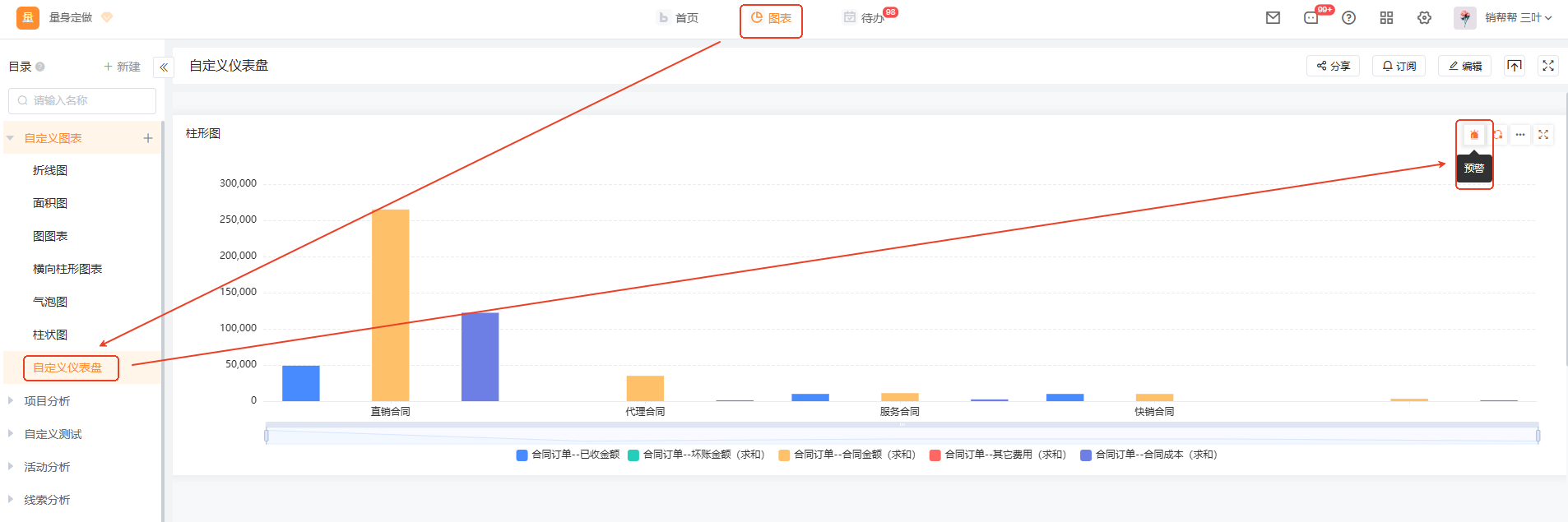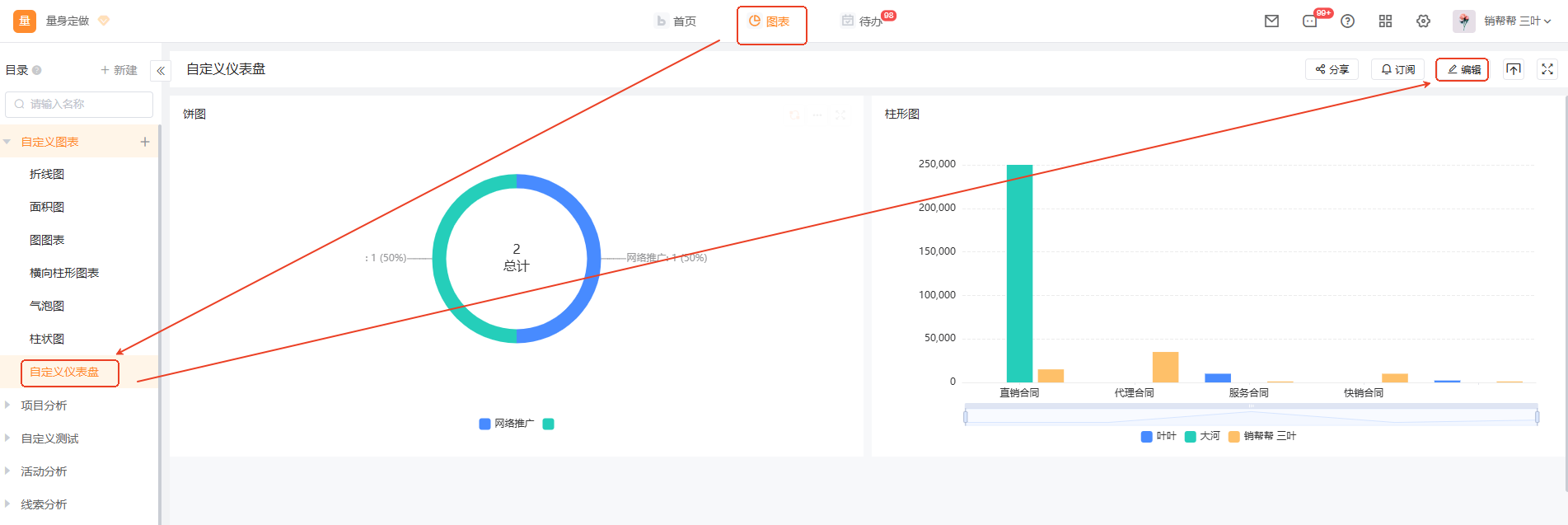操作入口: 图表中心 》对应仪表盘 》编辑