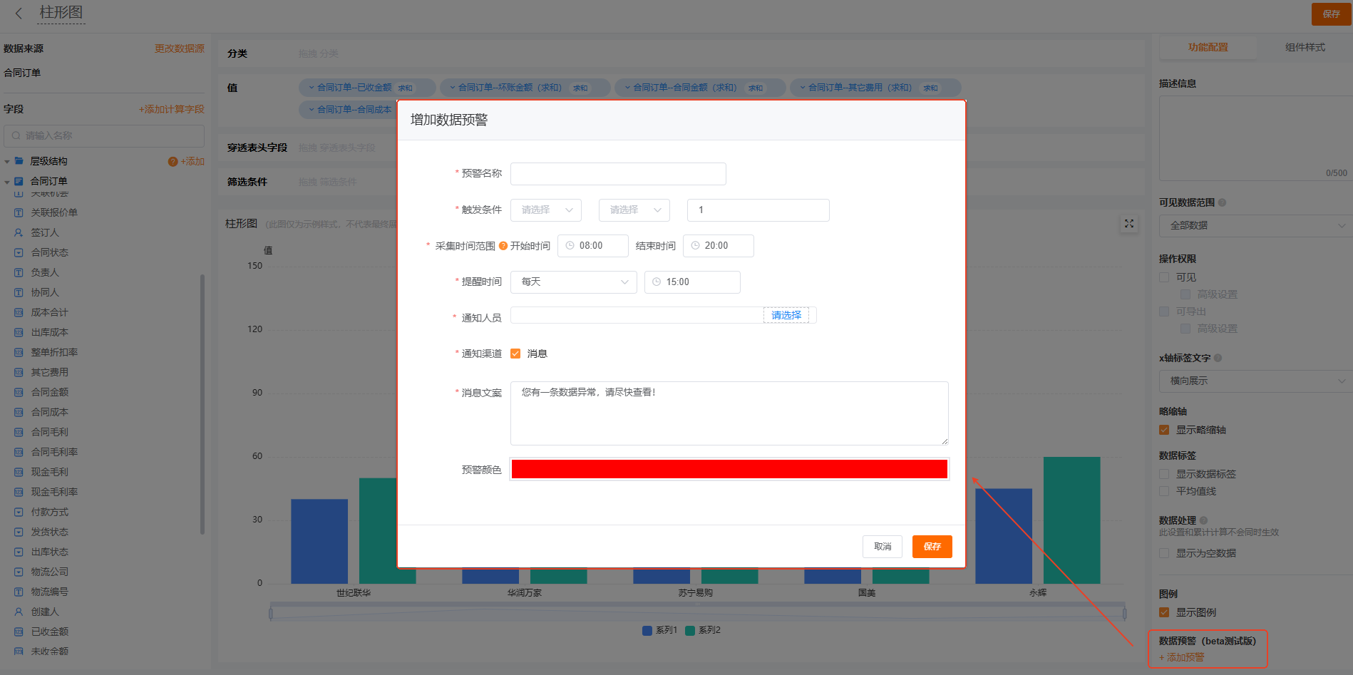 预警名称:该数据预警的名称,消息推送时显示的标题,字数在20字以内。