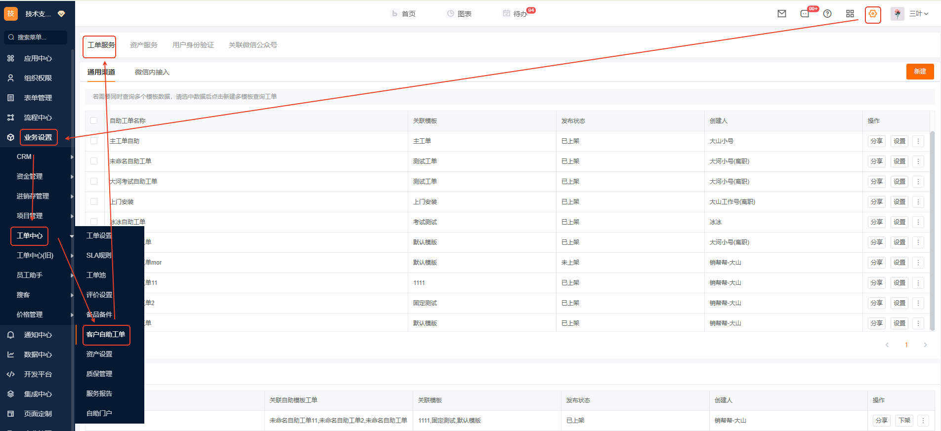 功能入口: 管理中心-业务设置-工单中心-客户自助工单