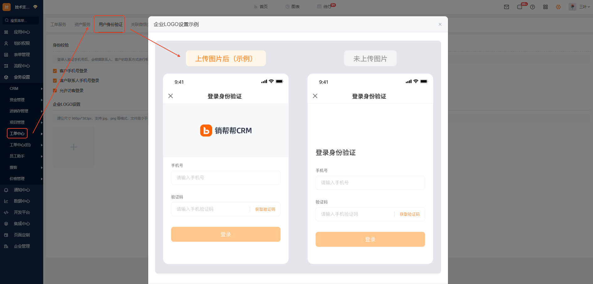 功能入口: 管理中心-工单中心-客户自助工单-用户身份验证