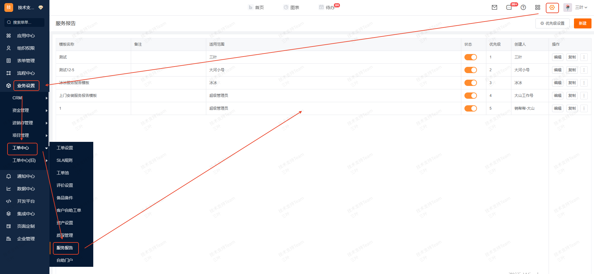 优先级设置:服务报告自动生成时,会根据优先级依次匹配,生成对应的服务报告