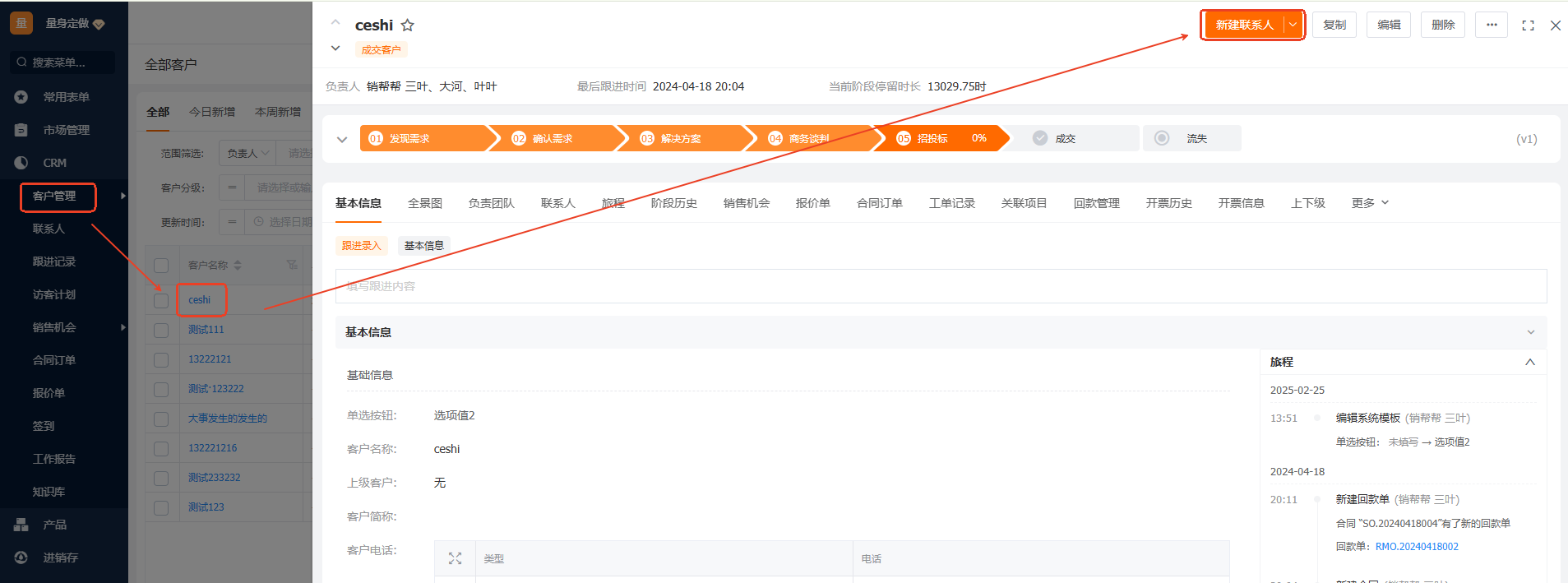 主联系人是什么意思?有什么作用? Q:主联系人是什么?有什么作用?如何设置主联系人? 联系人:对企业客户而言:客户名称就是法定公司名称,跟客户相关的其他人员,譬如您的业务员跟进的客户是公司的部门主管、财务、行政等,那这些就是客户的联系人,主联系人:客户的多个联系人中最重要的一位就可以设置为客户的主联系人。设置了主联系人可以在客户列表页显示主联系人的姓名和电话,可以更快捷联系客户联系人;不设置主联系人的话,第一个新建的联系人默认为客户的主联系人新建联系人两个入口:a.新建客户的界面可以直接添加联系人b.新建完成的客户,点击客户详情添加联系人 设置主联系人的步骤如下图: 客户列表页主联系人的显示如下: